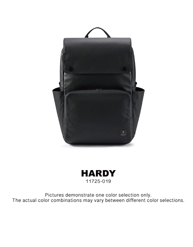 Competence & Confidence The HARDY collection is made with strong linen PU material on the exterior and light nylon on the interior.The FRP steel zippers and matte-black logo plate give the bag a professional finish. With various organized compartments to boost packing efficiency, the HARDY series can accomodate all kinds of needs, be it business or leisure.