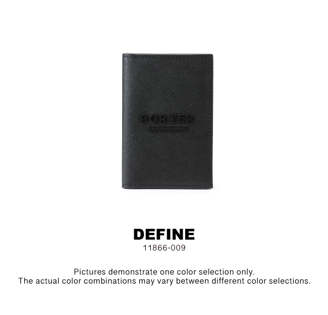 DEFINE Card Case 11866-00901 Color / BLACK Qty 1 USD$155.00 Shopping cart Buy now Product description Confidence on Your Terms The DEFINE collection features durable pebble-grain cow leather with a textured finish and embossed logo. Available in a range of styles. Product specifications Card Slots Back Card Compartments Comes with Packaging Box Material: Leather , Lining: Nylon , Others: Woven Fabric & Metal Hardware Size: L7.5 x H11.5 cm Share : Content Recent browsing history NEW HEAT LUXY CATCH MORI LUXY BOUND BEND MELODY SPOT LUXY NIMES MELODY PUNK LUXY PORTER INTERNATIONAL x CLASSICO AVENUE FORE ACCESSORY LONG SLEEVE SPOT