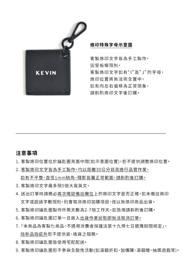 Home 活動快訊 客製烙印鑰匙圈 客製烙印鑰匙圈 [官網限定] 新春限定 換包清單 2025 PORTER INTERNATIONAL x GERARD 年節出貨公告 春節門市營業時間公告 客製烙印鑰匙圈 超商取貨說明 會員權益 ACCESSORY 可加購 客製烙印 真皮鑰匙圈 NT$1,150 行銷活動 客製烙印鑰匙圈