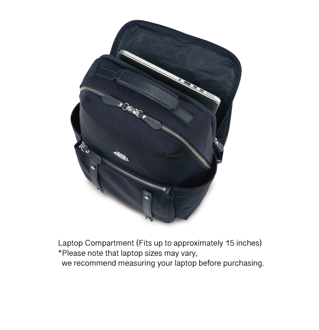Laptop Compartment (Fits up to approximately 15 inches) *Please note that laptop sizes may vary, we recommend measuring your laptop before purchasing.