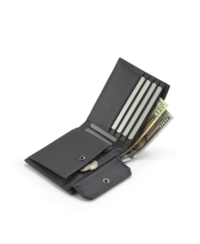 DEFINE Bi-Fold Wallet 11866-00216 Color / GRAY Qty 1 USD$205.00 New Arrivals Shopping cart Buy now Product description Confidence on Your Terms The DEFINE collection features durable pebble-grain cow leather with a textured finish and embossed logo. Available in a range of styles. Product specifications Card Slots x6 Standard Bill Compartments x2 Press Button Coin Pocket Comes with Packaging Box Material: Leather , Lining: Nylon , Others: Woven Fabric & Metal Hardware Size: L11.5 x H9.5 cm Share : Content